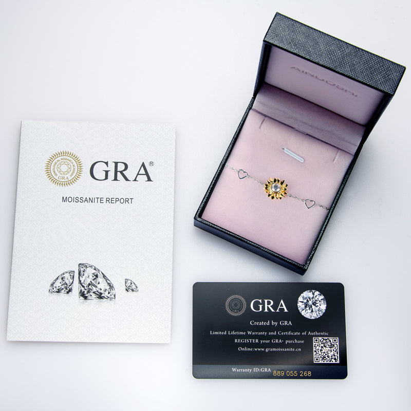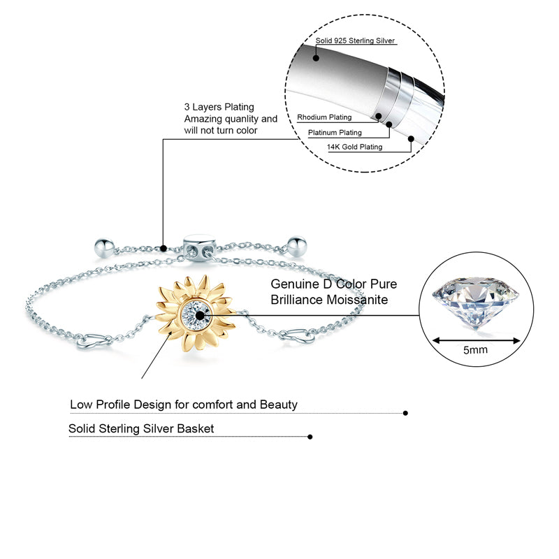 Bracelet Sunflower Heart in moissanite stone silver 925